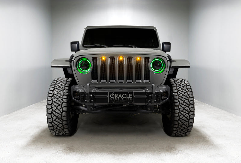 The Popular Oculus(tm) Bi-LED Headlights by ORACLE Lighting are now available in a ColorSHIFT(tm) RGB+W Color-Changing version. Oculus Headlights feature advanced focused LED projection that outshines all the competition (including the factory LED headlights). With 4,800 Lumens of high-quality Bi-LED projection, these headlights provide enhanced driver visibility in all weather conditions. Light focus is very important for driver safety and for others who can have their vision obstructed by glare. We are proud to offer the most focused & lowest-glare LED Headlights for the JL and JT on the market. Each LED feature has a separate cable output and can be connected together so all 3 create the same color or set up as 3 separate Channels or "zones" depending on the user preference and the ColorSHIFT controller selected. Please note that these features are intended for off-road "show" use only and are not compliant for street use. The Pure-White DRL has its own wiring harness (same as the original Oculus) that connects to the fuse box with an add-a-circuit for easy and safe integration. The DRL will come on when the engine is running or can be connected to a switch (including the factory Aux switches) for additional user control.